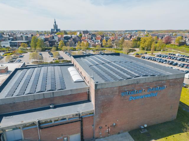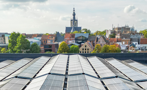 Aarschot zet in op duurzame energie. We installeerden zonnepanelen op de daken van de bib, de stadsfeestzaal, het woonzorgcentrum, het sportcentrum, het jeugdcentrum en het politiekantoor. Met een slim deelsysteem van Ecoob cv bieden de zonnedaken duurzame energie aan verschillende van onze openbare gebouwen, waaronder ook het stadhuis. Sinds 2019 realiseerden we zo bijna 15% energiebesparing en een CO²-reductie van bijna 20% in stadsgebouwen.